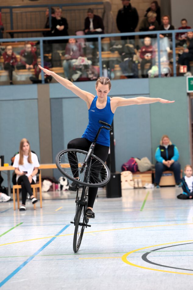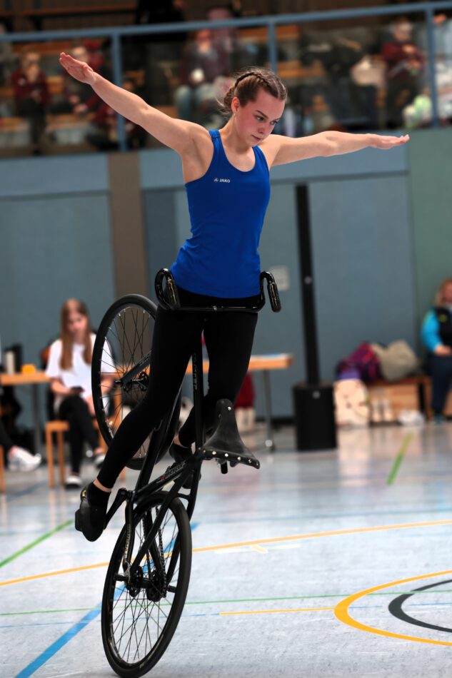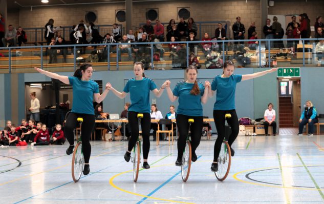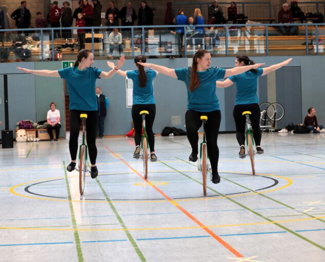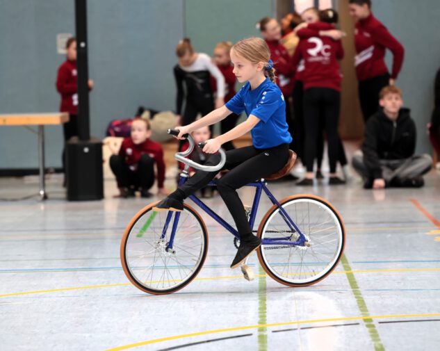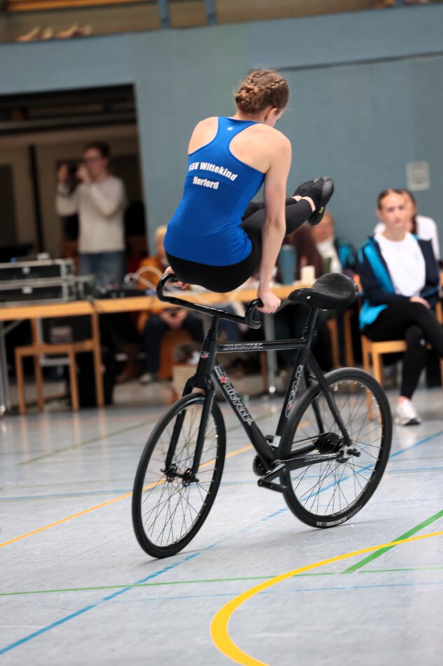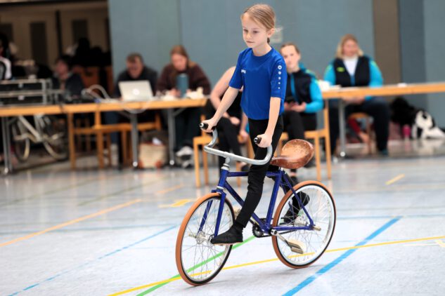 Auch in diesem Jahr fand der Nachwuchswettkampf „Fit wie ein Turnschuh“ im Kunstradfahren in Lieme/Lemgo statt. Dabei werden nicht nur die ersten Übungen auf dem Kunstrad gezeigt, sondern auch Geschicklichkeit und Schnelligkeit in einem Parcours in der Sporthalle bewertet. Aus beiden Elementen wird dann das Gesamtergebnis errechnet.